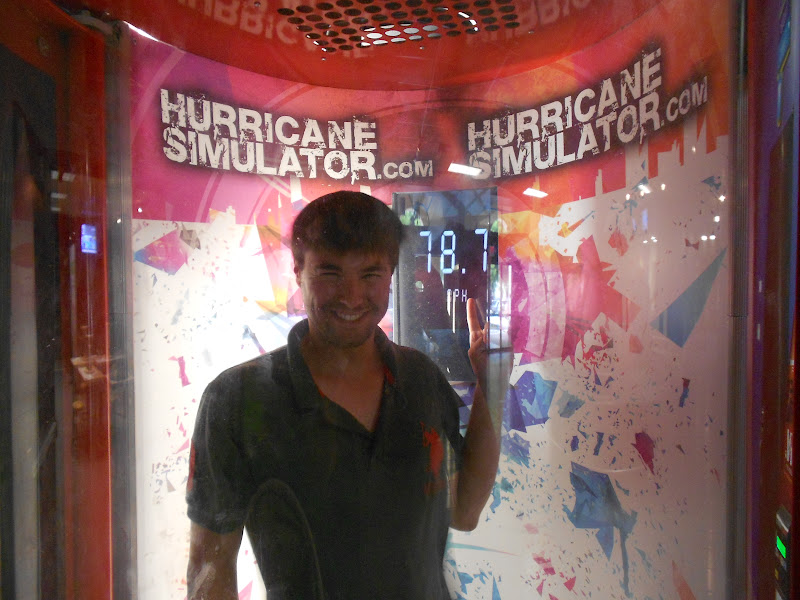 Un simulateur d’ouragan! Ouah là, n’y résistant pas, prenant son courage à 2 mains, le chéri s’est faufilé à l’intérieur et pendant 1 min….. bin du vent, jusqu’à 80 MPH, juste de quoi décoiffer sa mèche !